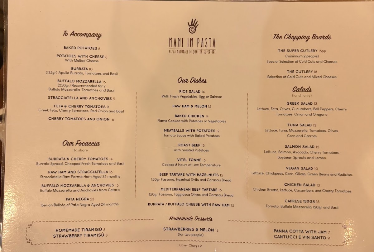 Mani in Pasta - Pizzeria Menu